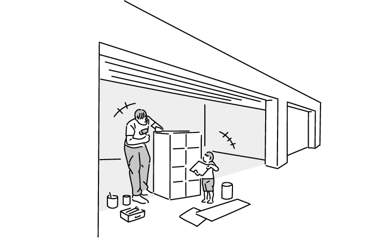 エンジンルームの点検や、タイヤの交換など愛車のメンテナンスや、DIYや日曜大工など趣味の作業場として様々な用途にも使えます。見せる収納でさらに個性的な演出も可能です。